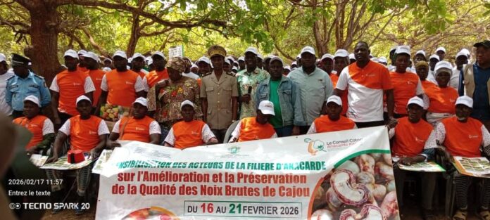 Au total, vingt-huit missions de sensibilisation couvrant 28 localités dans le bassin anacardier sur le territoire devront être organisées. Le mardi 16 février 2026, un groupe de 100 producteurs et 50 acheteurs issus des villages de la sous-préfecture de Sohouo à une quinzaine de kilomètres de Korhogo ont reçu une formation sur les techniques et les bonnes pratiques pour produire du cajou de bonne qualité et à même d’être acheté à de meilleurs prix sur le marché.